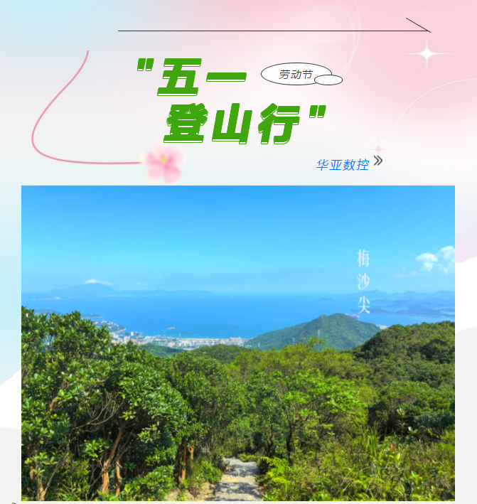 五月,是揮灑汗水的季節(jié),更是致敬奮斗者的時節(jié)。在五一勞動節(jié)來臨之際,華亞數(shù)控積極踐行企業(yè)文化,工會組織假日期間未回家的員工開展了一場別開生面的登山活動,“茶溪谷-梅沙尖-大華興寺”徒步之旅。以一場充滿激情與挑戰(zhàn)的戶外之旅,展現(xiàn)團隊風(fēng)采,傳承勞動精神。